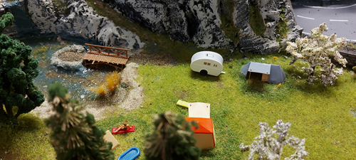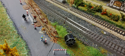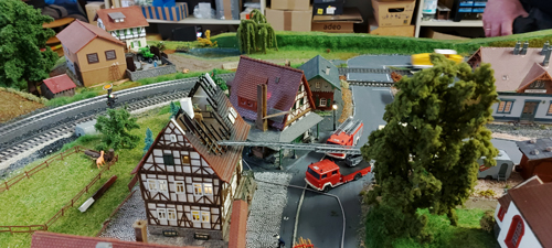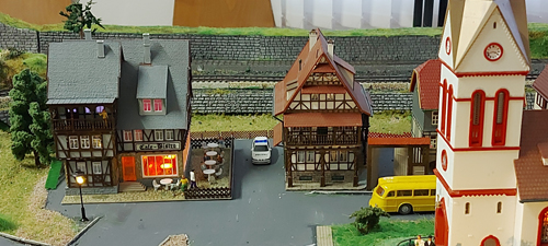 Gleich an zwei Frankenbacher Orten zeigten die Modelleisenbahnfreunde Biebertal vielen Besucher/innen, was ihr Hobby ausmacht. Im alten Schulhaus ganz oben war die große Anlage aufgestellt, die verdeutlichte, dass es bei den Männern (eine Frau ist bisher nicht Mitglied im Verein) nicht nur um Technik geht, sondern dass ihnen das Gestalten von Landschaften viel Freude bereitet. Stephan Krause bedauerte, dass es bisher in dieser Anlage keine Brücke gibt. Es gibt aber Tunnels. Freude am Gestalten zeigten auch die verschiedenen Dioramen im Gemeindesaal der Evangelischen Kirche. Hier gabs dann für die Gäste Kuchen und Getränke gegen Spende. Es waren stets Besucher anwesend.