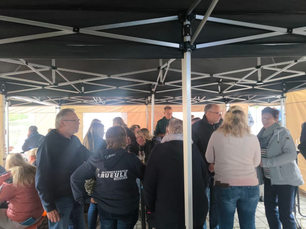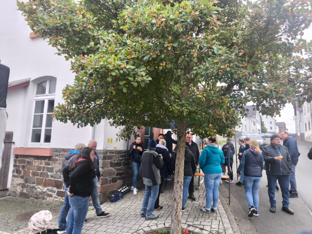 Alle Jahre wieder am 03.10. laden die Bräueule Frankenbach zum Backhaustreff an den Brunnenplatz ein. Dort gibt es dann frischen Zwiwwelkuchen und Schmierselskuchen aus dem Backhausofen. Dazu neben Kaffee auch frisch gezapftes Veltins und für zu Hause ne Stracke. Das Wetter hat mit gespielt und es blieb trocken von oben. So fanden auch viele von Rodheim, Erda oder anderen Dörfern in der Umgebung den Weg nach Frankenbach. Holger Waldschmidt holte mittags extra 2 Blecher Kuchen für die Sozialstation Biebertal ab.