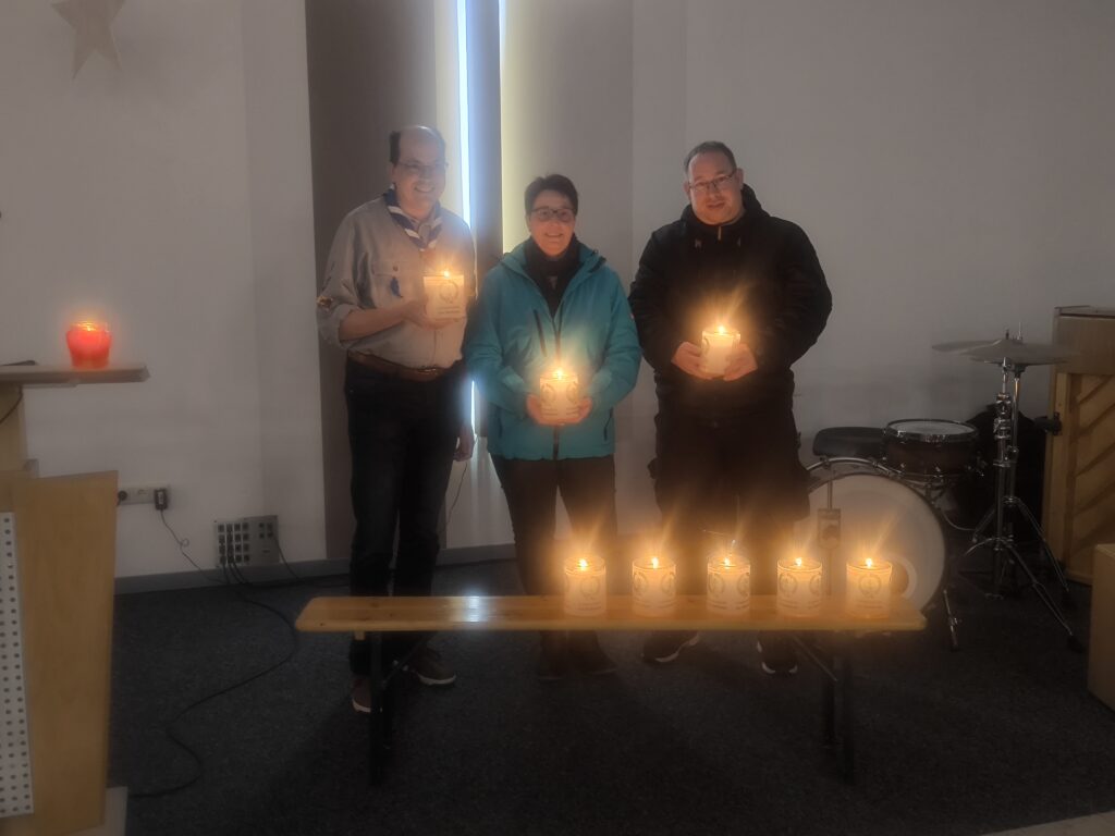 Am Freitag, den 19.12.25 waren Interessierte Bürger und Vertreter der Ortsvereine eingeladen, das Friedenslicht in der FeG in Empfang zu nehmen. Das Friedenslicht wurde 1986 vom Österreichischen Rundfunk ins Leben gerufen. Jedes Jahr entzündet ein Kind aus Österreich in der Geburtsgrotte Jesu in Betlehem das Friedenslicht. Am Samstag vor dem 2. Advent wird die kleine Flamme der Hoffnung in einer ökumenischen Aussendungsfeier in Österreich an die internationalen Pfadfinder*innen-Delegationen weitergegeben. Pfadfinder*innen tragen das Licht von dort aus weiter – nach Europa und darüber hinaus in viele Länder der Welt.