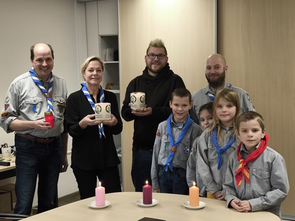 Im Laufe des Wochenendes erreichte das Licht auch den Heimat- & Geschichtsverein Frankenbach, die Ev. Kirche Frankenbach, die FeG Altenkirchen-Bermoll, sowie die SPD und die AWO. Am Montag wurde dann das Licht der Schirmherrin der Frankenbacher Pfadfinder Patricia Ortmann und dem Jugendpfleger Emu Schönfeld im Sitzungssaal der Gemeinde übergeben.